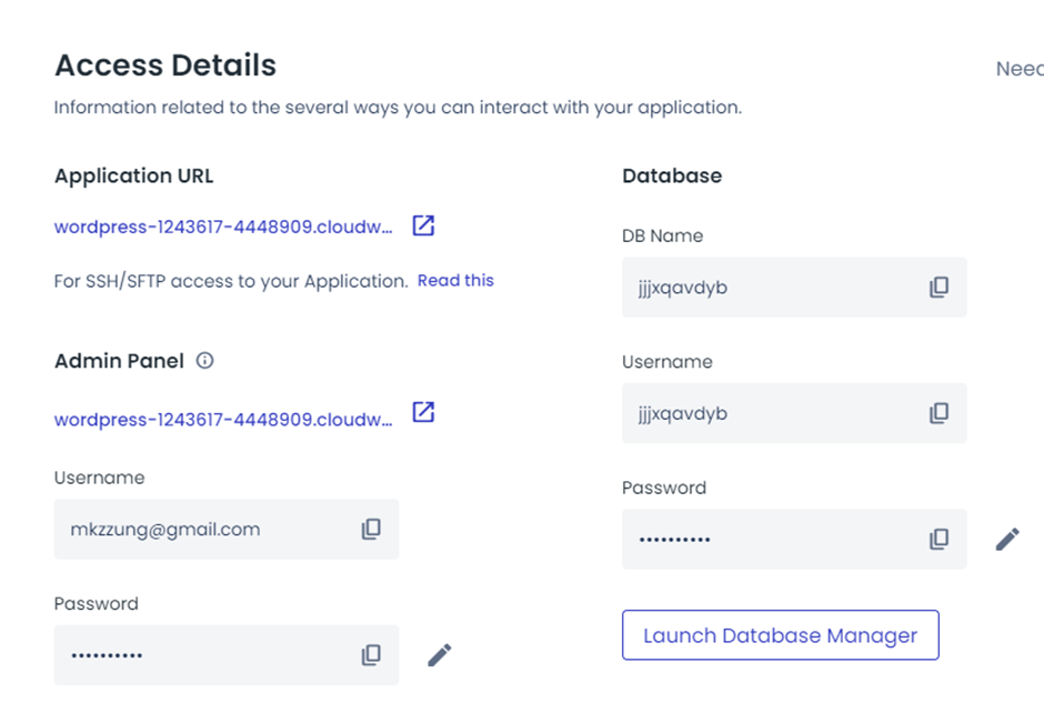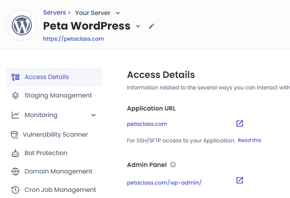 클라우드웨이즈 서버에 설치한 애플리케이션을 선택하시면 아래와 같은 화면이 나옵니다.