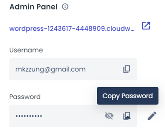 참고로 워드프레스 관리자 페이지의 계정은 클라우드웨이즈와 다르며 가입시 셋팅된 임시비밀번호는 외우기 어려우므로 아래에서 비밀번호를 변경해 주세요.