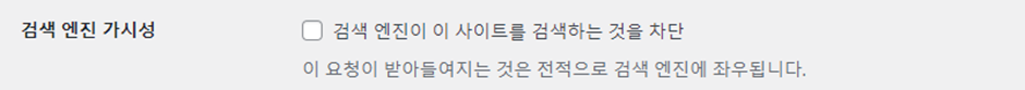 이유는 만약 체크가 되어 있다면 글자 그대로 검색 엔진에서 본인의 사이트가 상위 노출되지 않기 때문입니다. 따라서 처음부터 아예 체크되지 않았기 때문에 그대로 놔두도록 합니다.